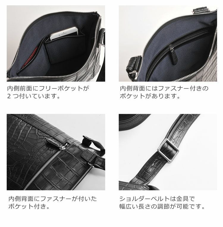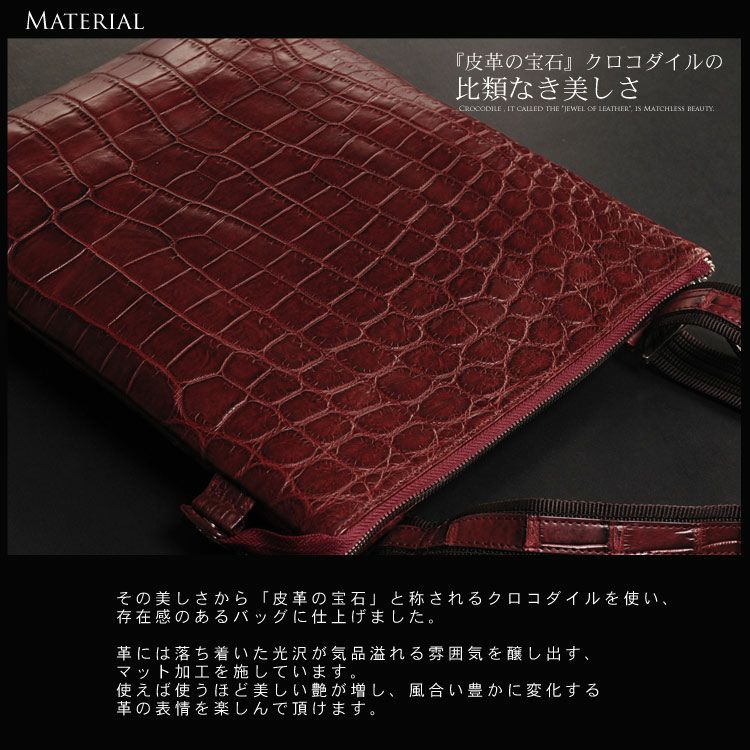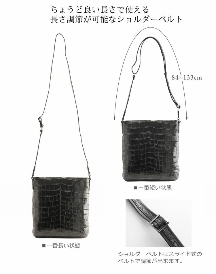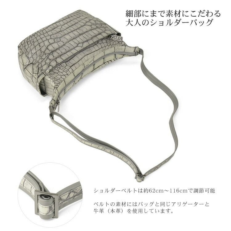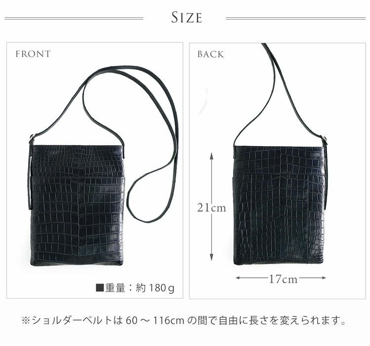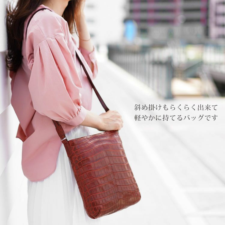 斜め掛けできるスタイルなので、手ぶらでの移動に便利です。通学や通勤、旅行や休日にと手ぶらで便利な斜め掛けバッグ。本革を使ったスタイルで高級感をプラスしてくれる、大人に相応しいデザインのバッグを多数取り揃えています。年齢や流行などを問わずに長く使える斜め掛けできる、ワニ革を使った高級感あるショルダーバッグを多数取り揃えています。