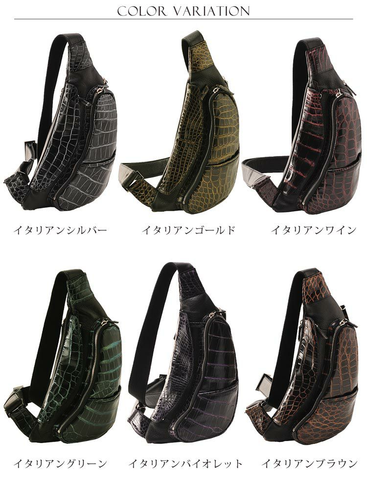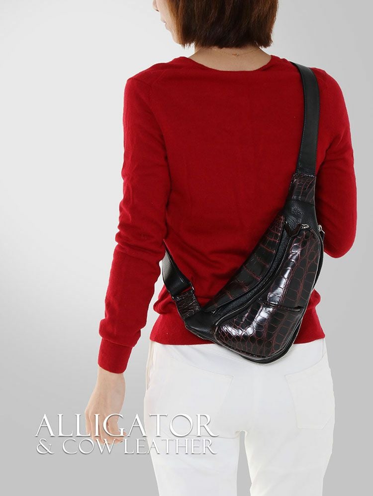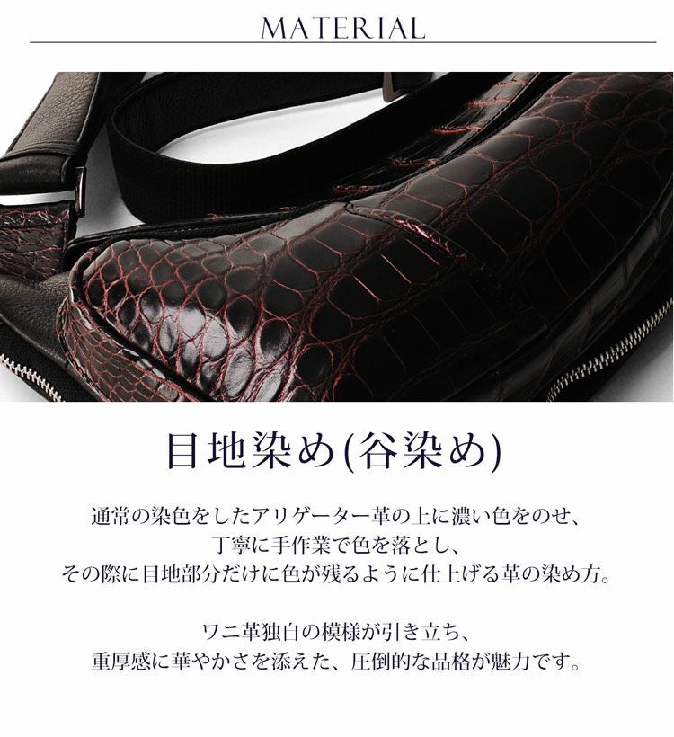 アリゲーター & 牛革 ボディバッグ 谷染め / 4FA