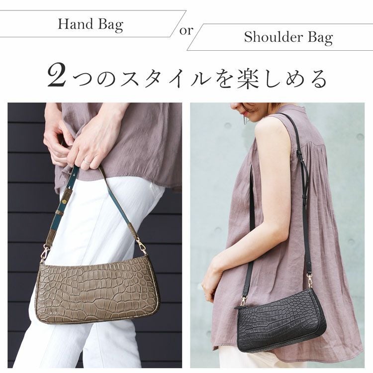 | 商品名:スモールクロコダイル (ポロサス) マット加工 2WAY ミニショルダーバッグ レディース |