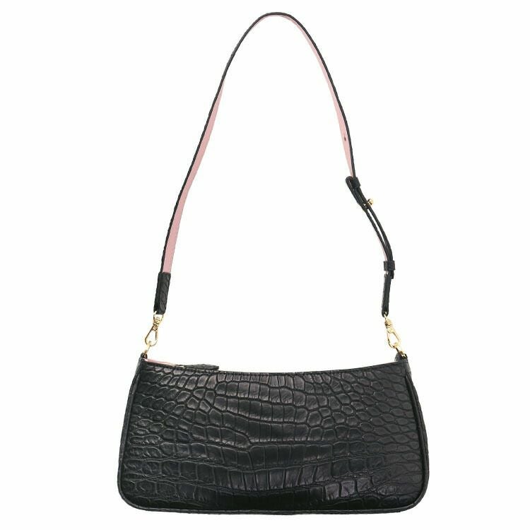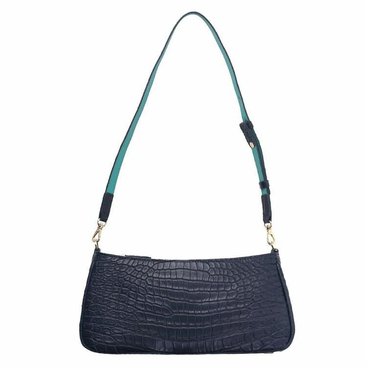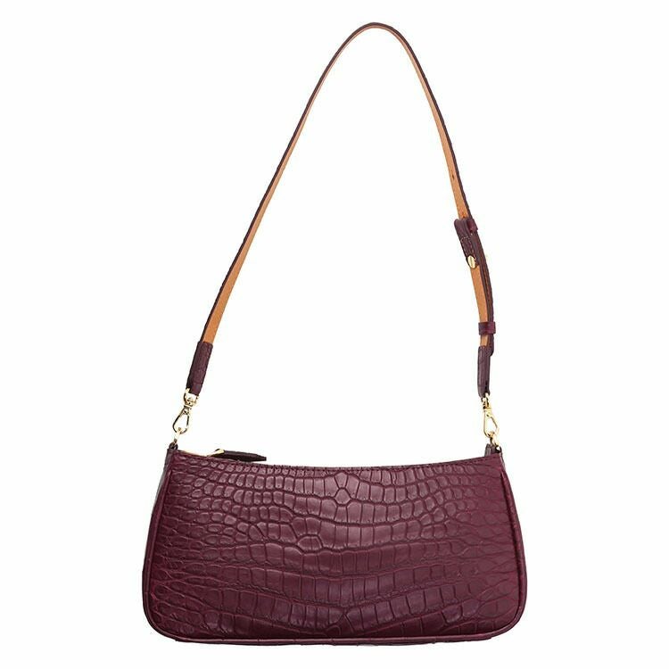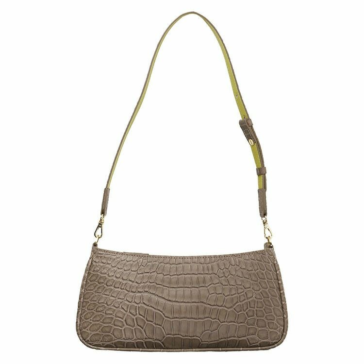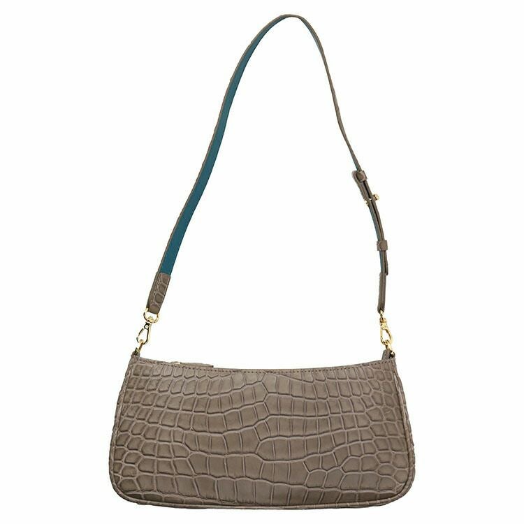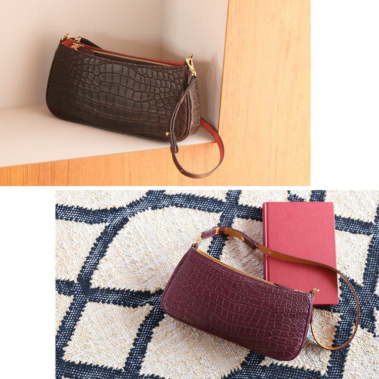 さりげないバイカラーがおしゃれなクロコダイルのミニバッグ。