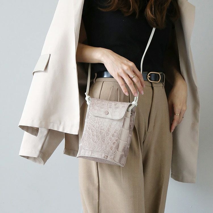 小さなバッグで身軽におでかけ、大人のクロコダイルミニショルダーバッグ。