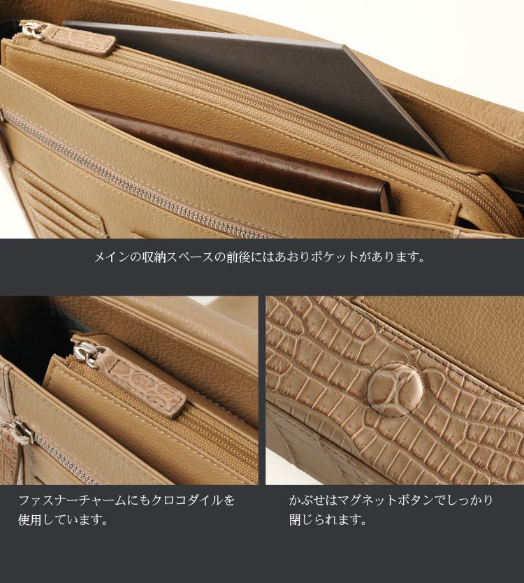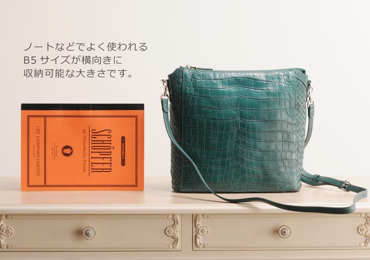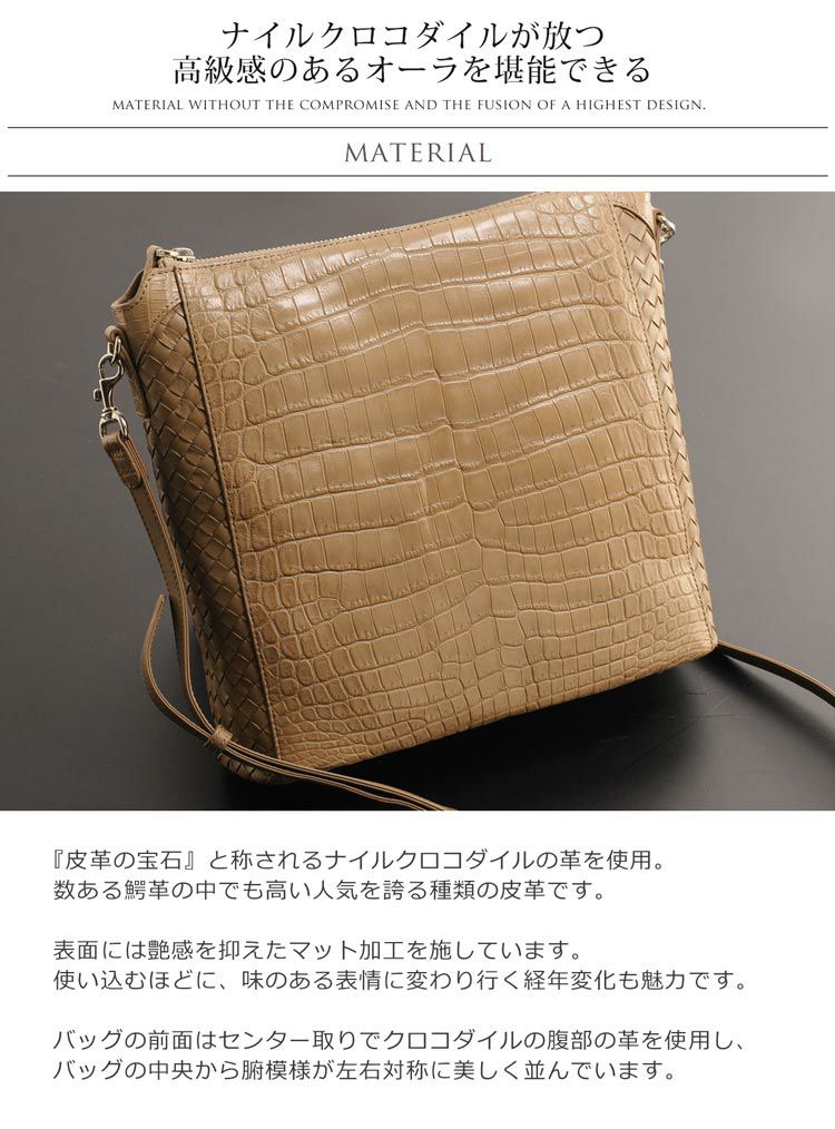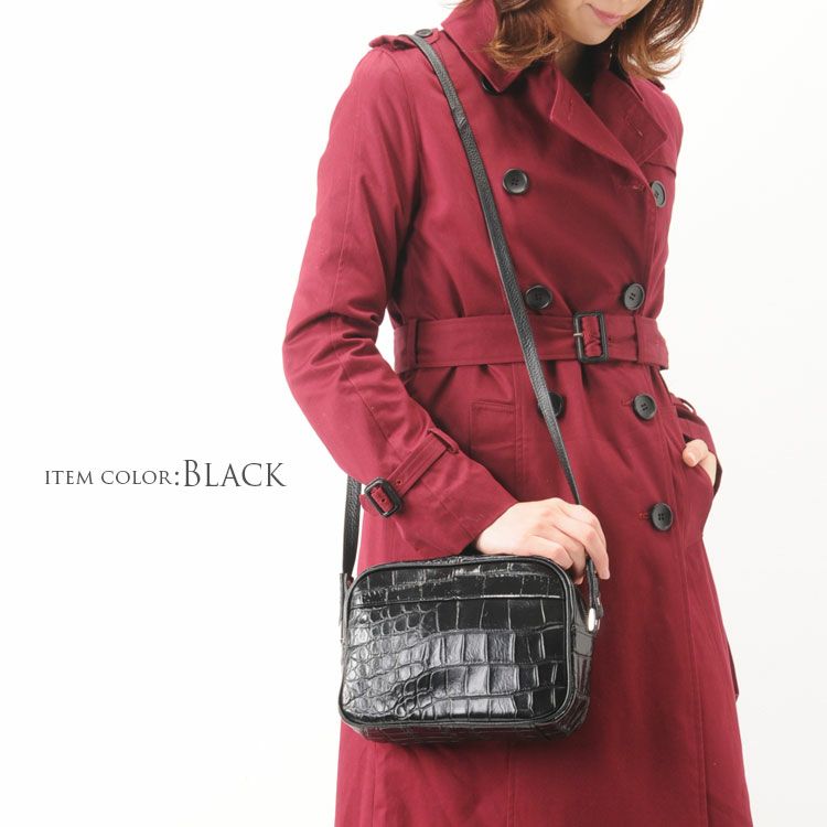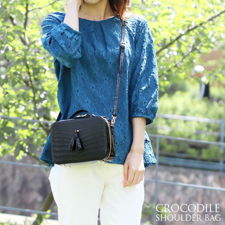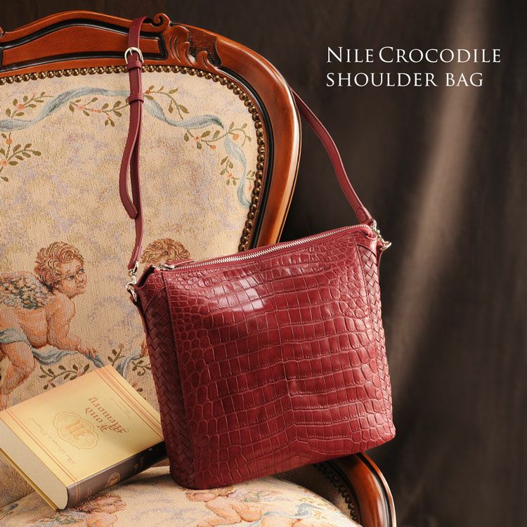 斜め掛けバッグ ワニ革 レディース