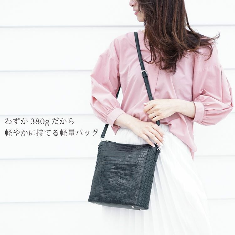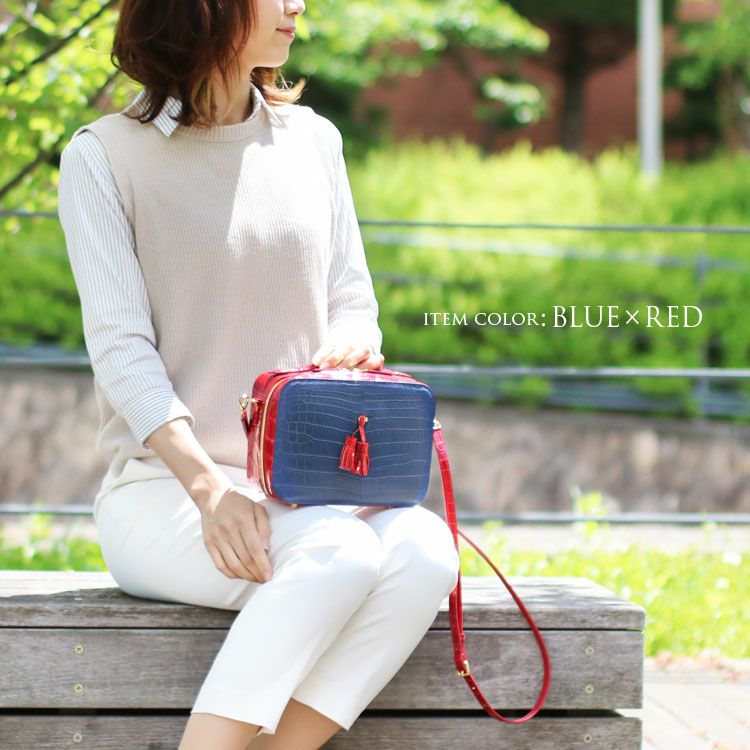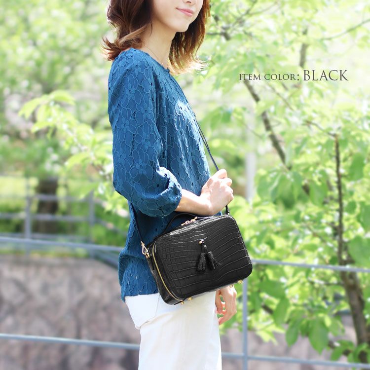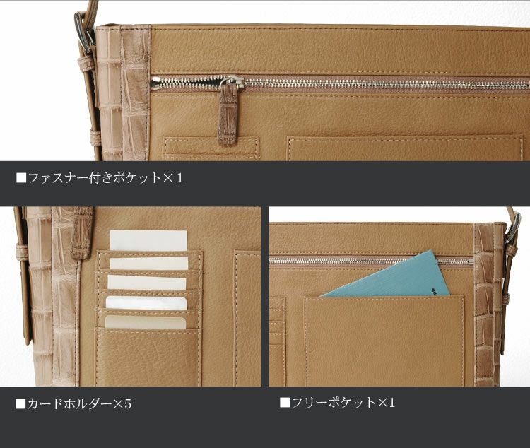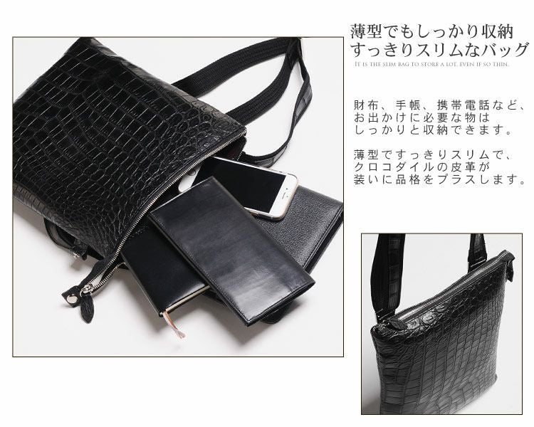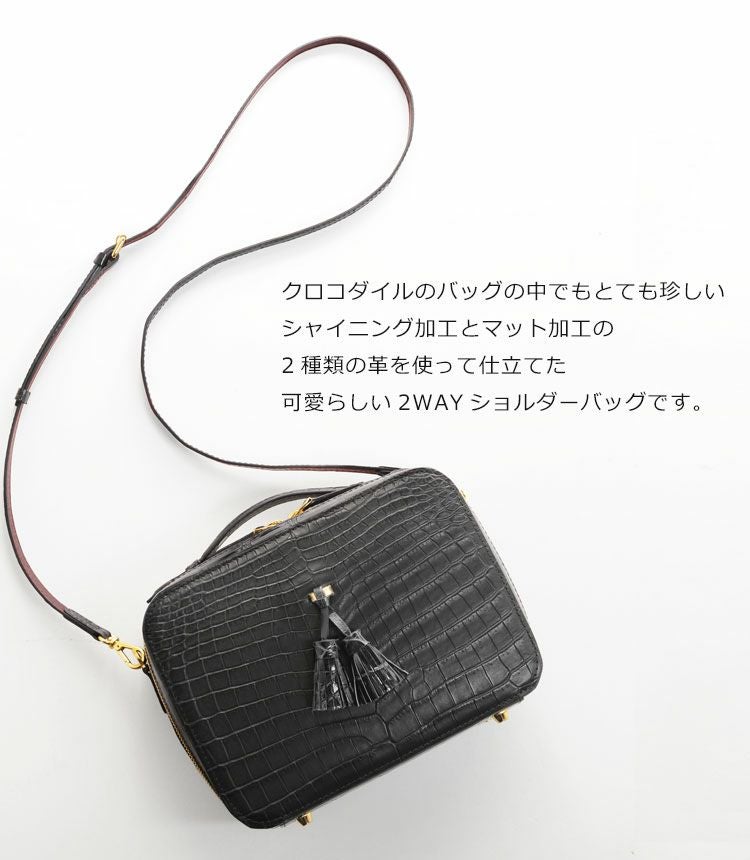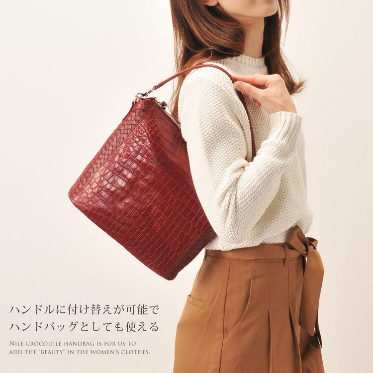 斜め掛けバッグ ワニ革 レディース
