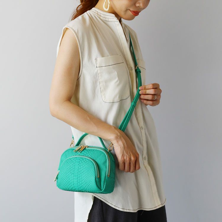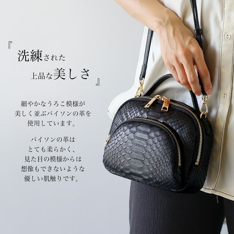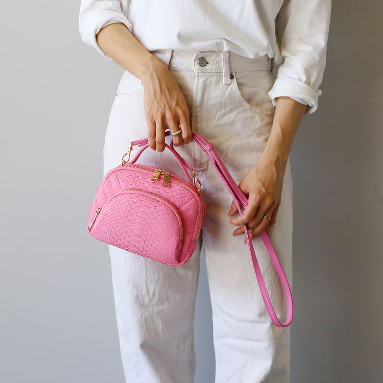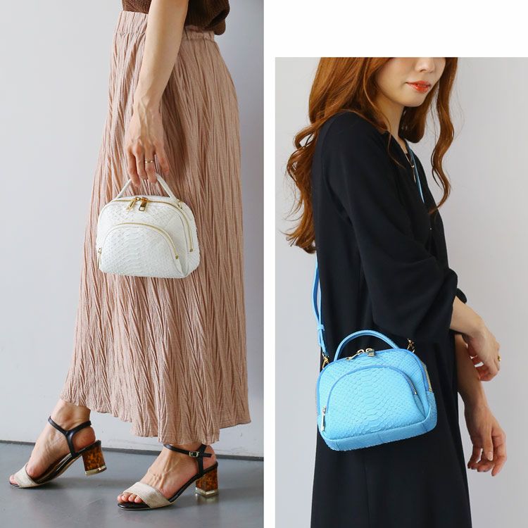 パイソンを使った2WAYで使える可愛らしいサイズ感の小さめバッグ。