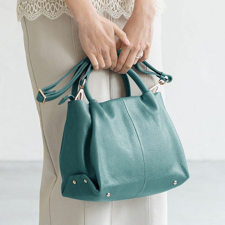 ふわっと柔らかく膨らんだシルエットが可愛らしいデザインのレザーバッグ。