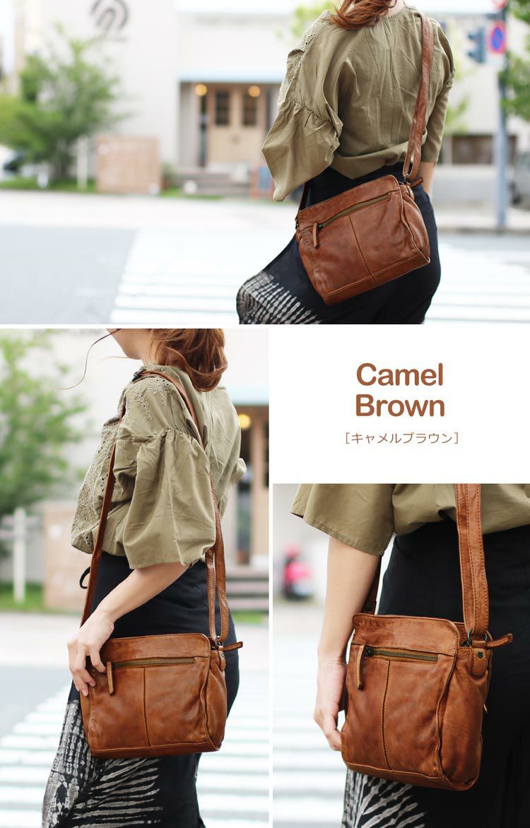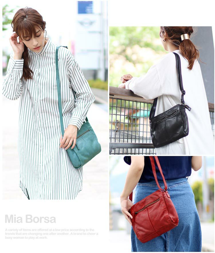 【名入れ 別途購入で可能】本革 ミニショルダーバッグ レディース ウォッシュ加工 斜めがけ Mia Borsa (07000333r) 5F