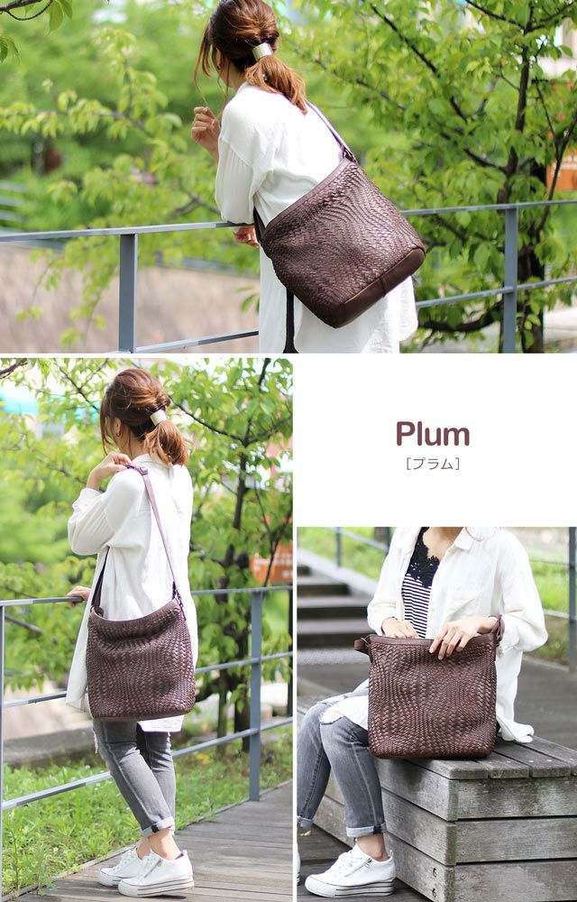 本革 ショルダーバッグ メッシュ 編み込み