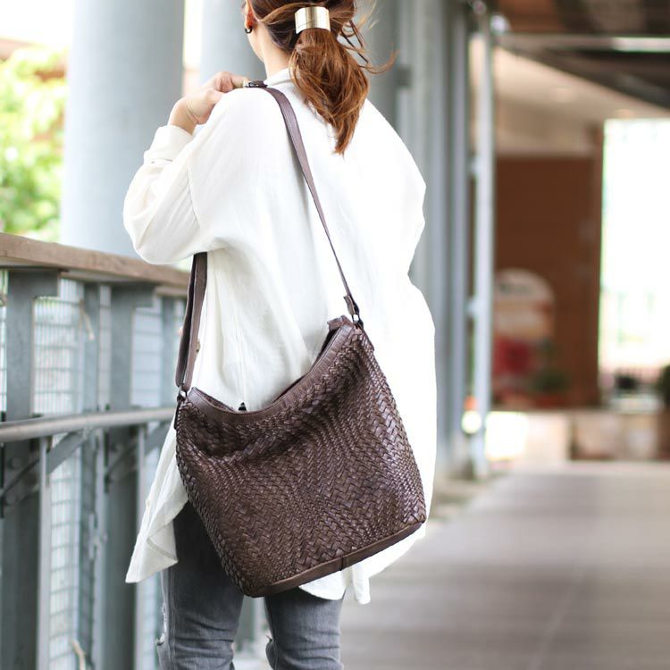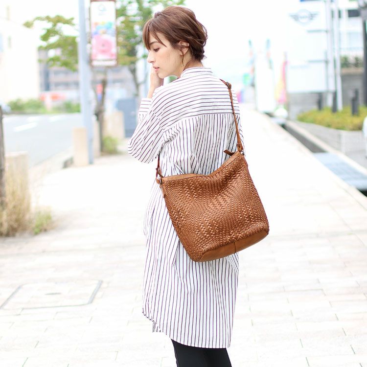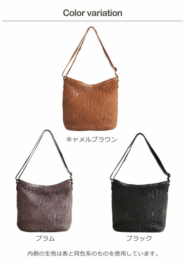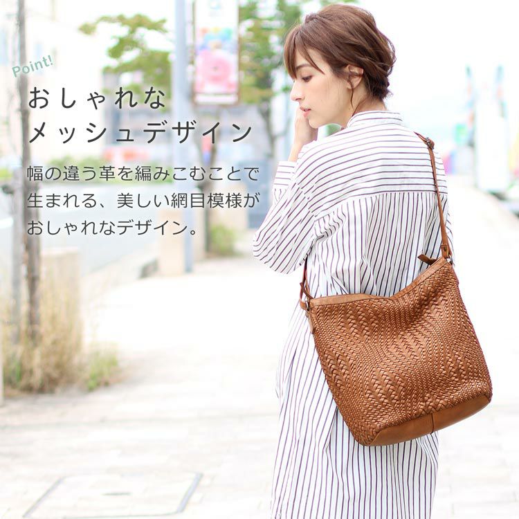 牛革を丁寧に編みこんだメッシュデザインのショルダーバッグ。