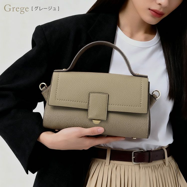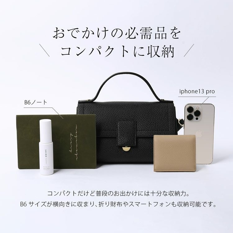 ハンドバッグ レディース かぶせ 牛革 本革 シボ ショルダーベルト 2way B6 横向き 上品 通勤 フォーマル オケージョン 小さめ きれいめ 斜めがけ 肩掛け バッグ HALEINE アレンヌ セレモニー 入学式 卒業式 結婚式 お呼ばれ
