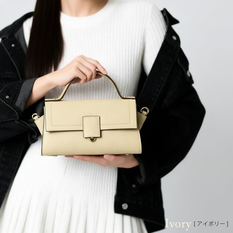 HALEINE 本革 ハンドバッグ ミニバッグ 斜めがけ 2WAY レディース アイボリー