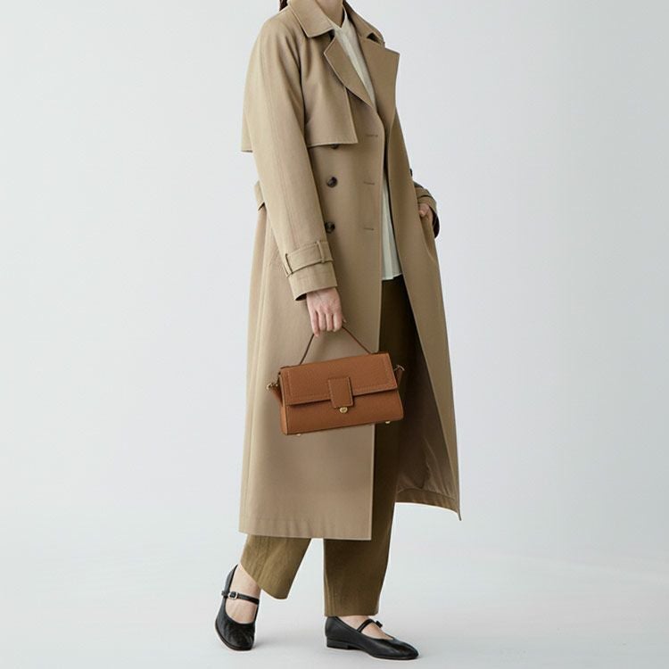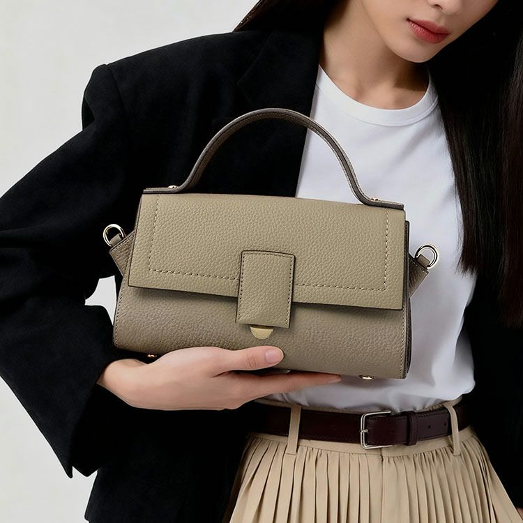 フラップ(かぶせ)仕様の端正なシルエットが魅力のハンドバッグ。