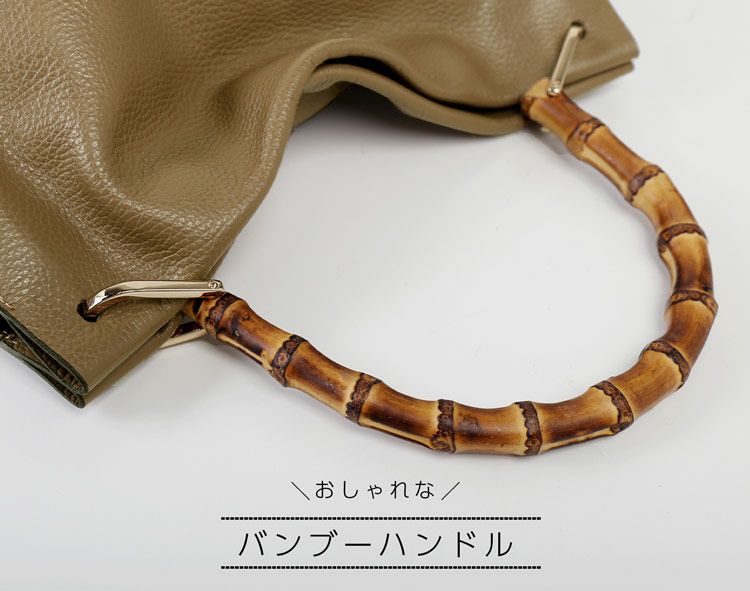 おしゃれで目を引くバンブーハンドル。コーディネートのアクセントにぴったりです。いつものスタイルがぱっと明るく、華やかな印象になります。