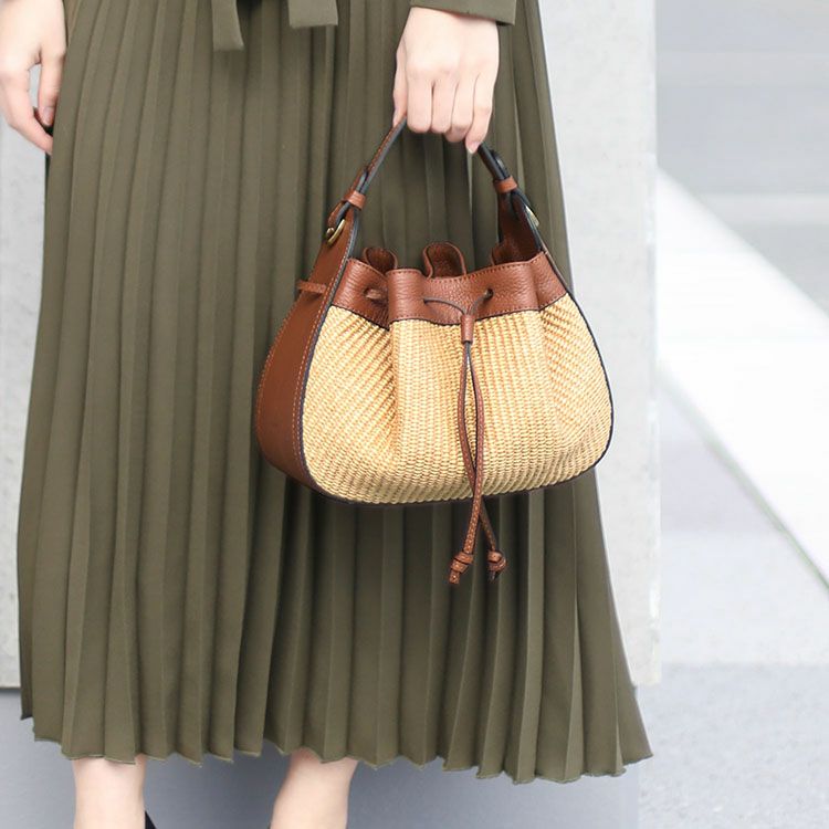 レザー×ストローバッグは、ストローのラフさにアクセントとしてレザーが加わった、モダンで抜け感のあるデザイン。