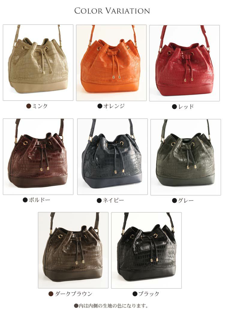 商品名:クロコダイル 巾着 バッグ / マット加工 ショルダー レディース