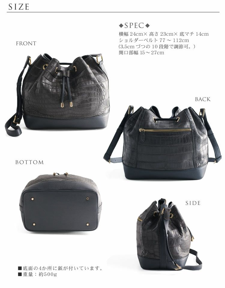 | 商品名:クロコダイル 巾着 バッグ / マット加工 ショルダー レディース |