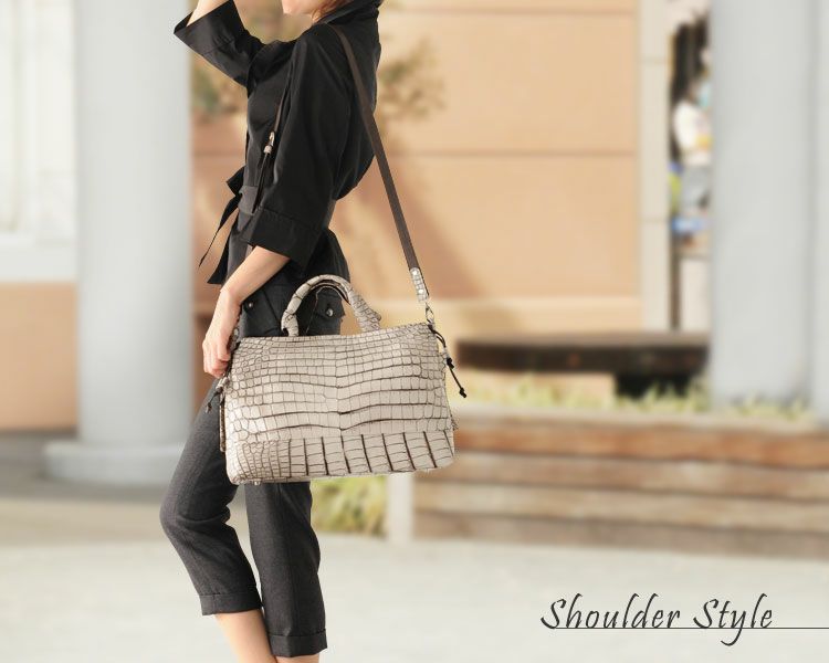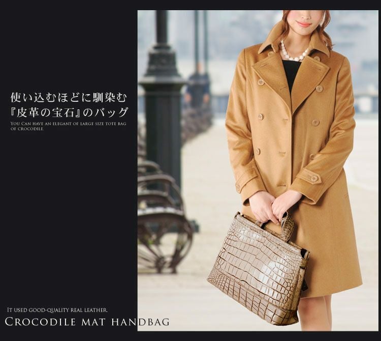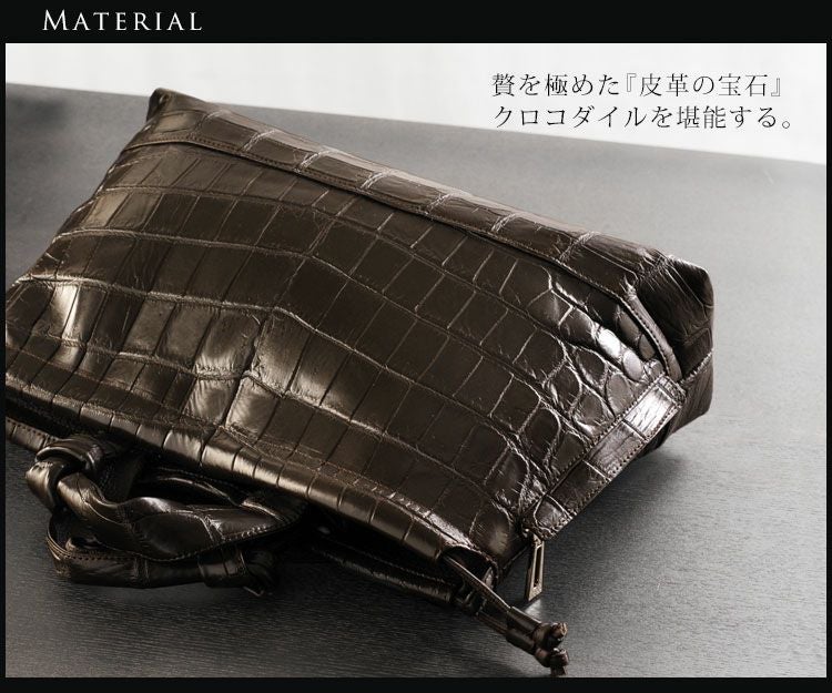 クロコダイルの革を使用し、日本の職人が仕立てた大きめの日本製バッグ。