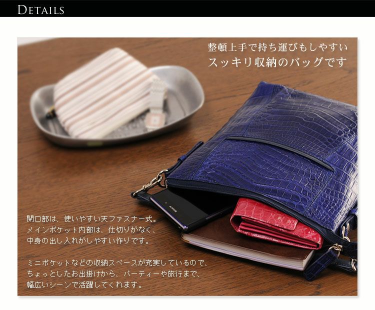 ・ハンドルや底面にもクロコダイルを使用しています。 |