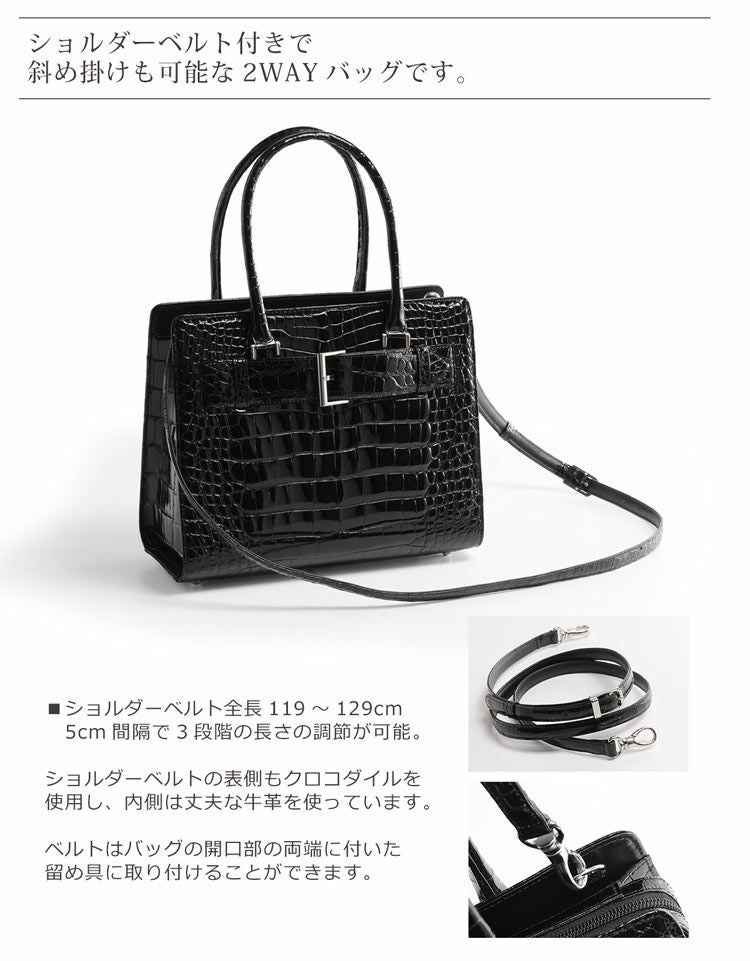 天然皮革 エキゾチックレザー 日本製 クロコダイル ハンドバッグ ベルト シャイニング加工 2way 仕様/レディース 本革 スクエアバッグ フォーマルバッグ ベルト付き JRA 安心 保証書 付き プレゼント ギフト ladiesbag