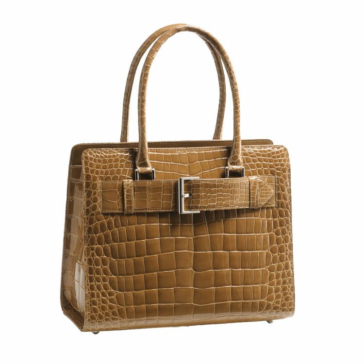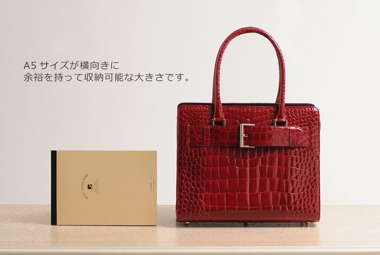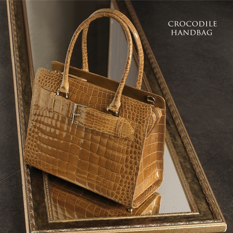 美しい光沢を放つクロコダイルの日本製ハンドバッグ。