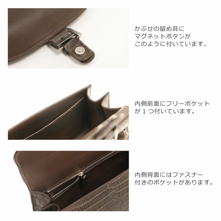 | 素材 | 表側:スモールクロコダイル(イリエワニ)/内装:羊革 |