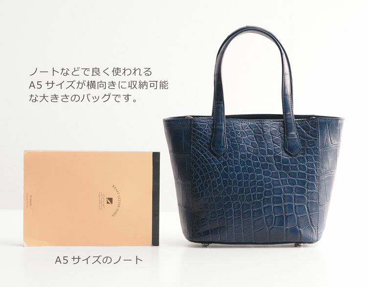 トート型のシルエットで、A5サイズ対応のコンパクトな2WAYバッグです。