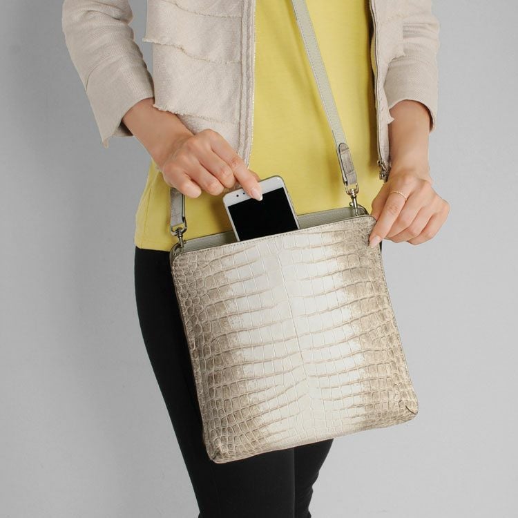 天然皮革 エキゾチックレザー ヒマラヤ クロコダイル ショルダーバッグ レディース 2way 安心 保証書 付き ホワイト 本革 フォーマルバッグ プレゼント ギフト ladiesbag