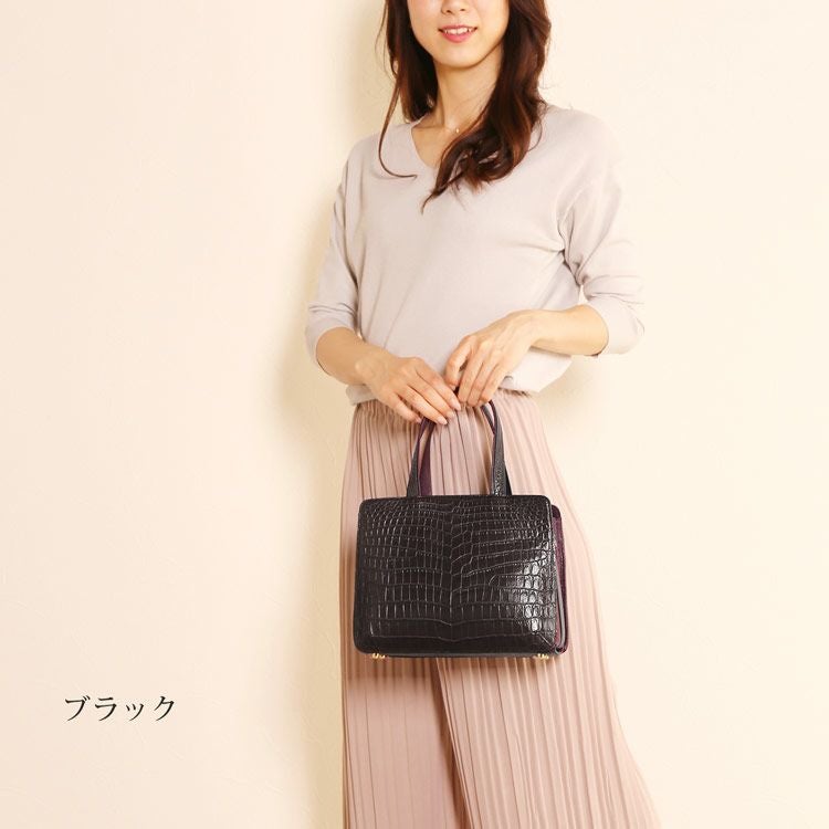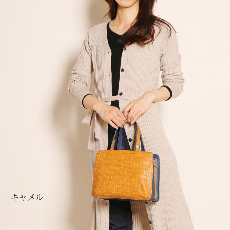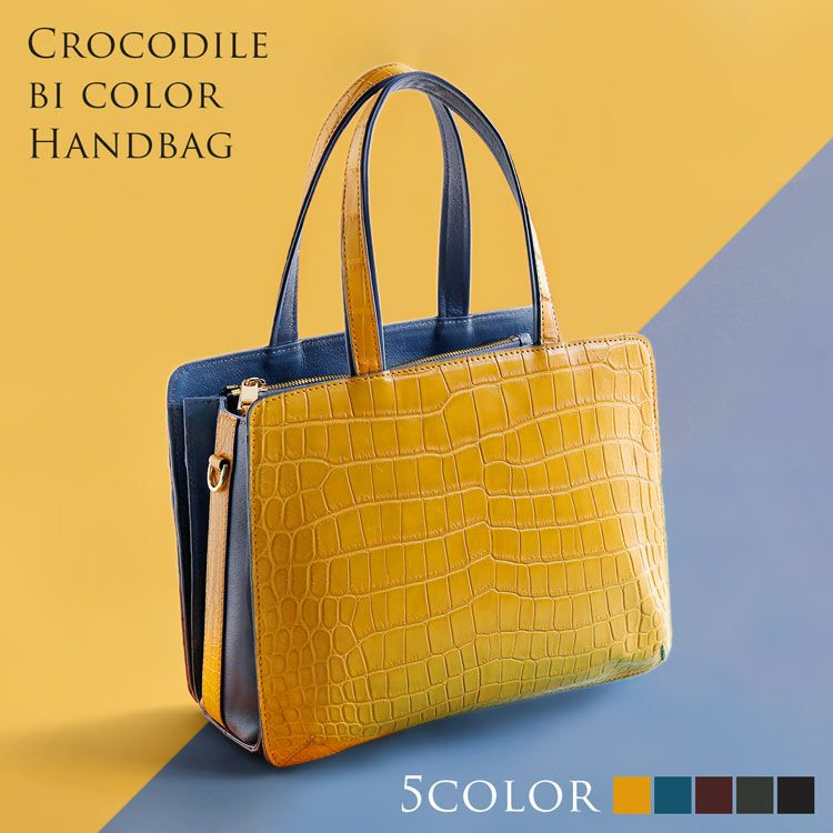 クロコダイル バッグ マット加工 バイカラー 2WAY 本革 レザー 4FA