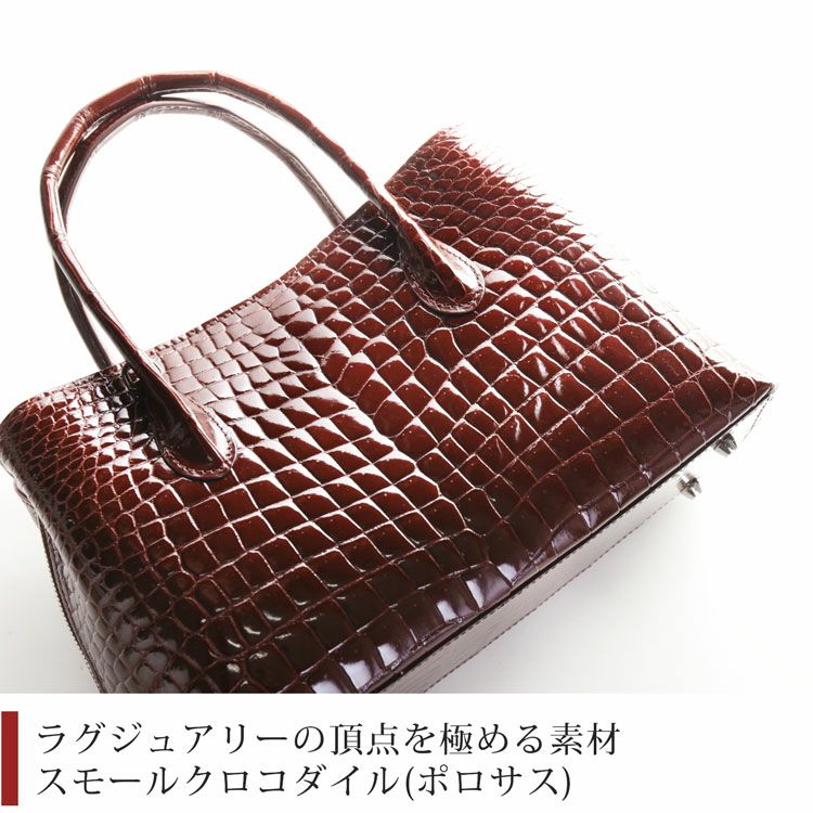 天然皮革 エキゾチックレザー スモール クロコダイル 2WAY ハンドバッグ センター取り シャイニング加工 ポロサス ショルダーベルト 付き 本革 鰐革 安心 保証書 付き プレゼント ギフト ladiesbag