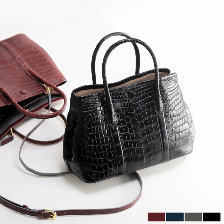 2. クロコダイル ハンドバッグ レディース マット 両面 センター取り 2WAY バッグ『クロコダイル保証書付き』 4FA