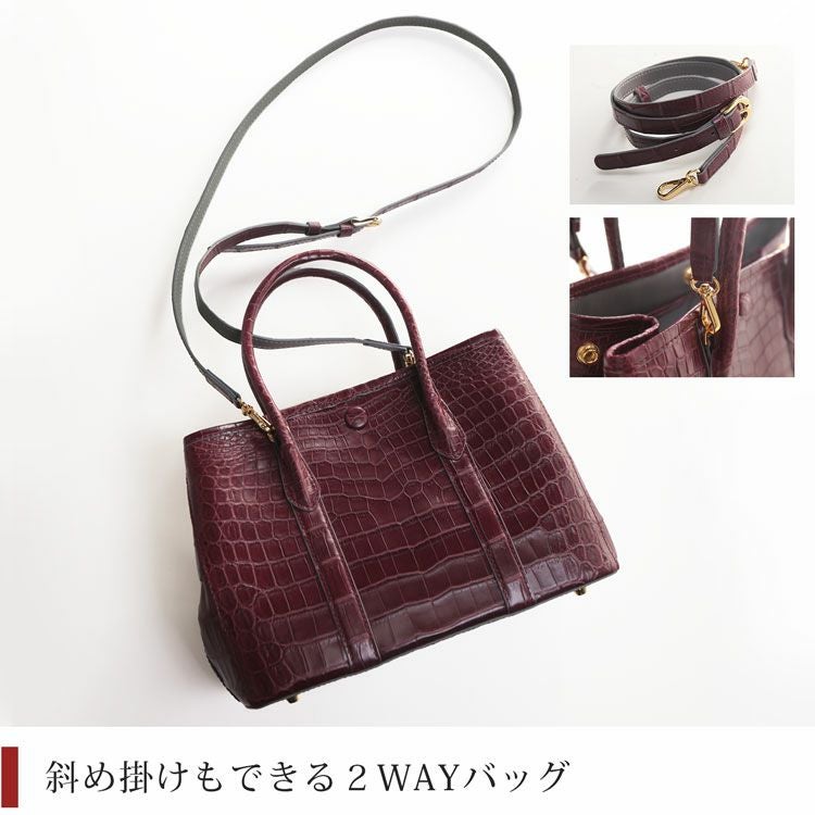 商品名:クロコダイル ハンドバッグ レディース マット 両面 センター取り2WAY バッグ ショルダーベルト 保証書 付き