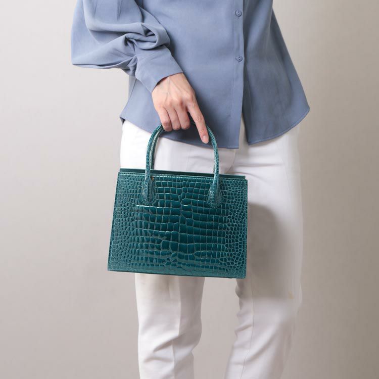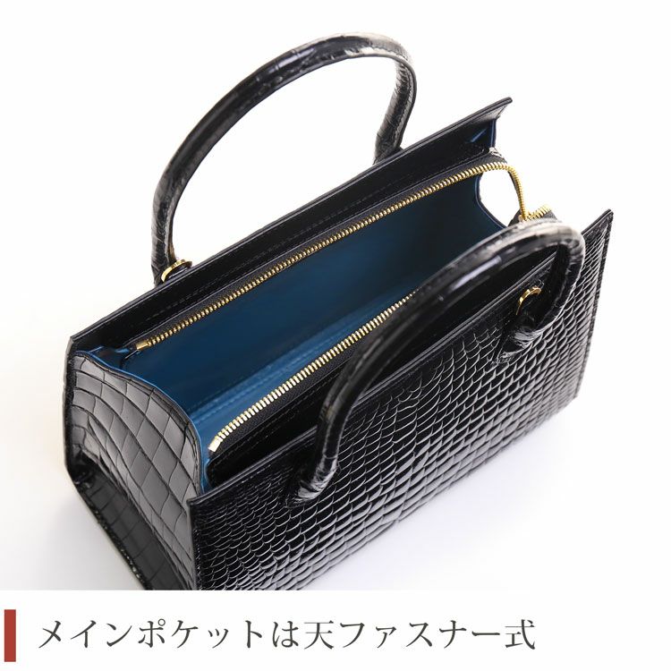 スモールクロコダイル ハンドバッグ レディース 2WAY センター取り シャイニング 加工 あおりポケット 付き フォーマルバッグ ポロサス エレガント 保証書 付き ギフト プレゼント