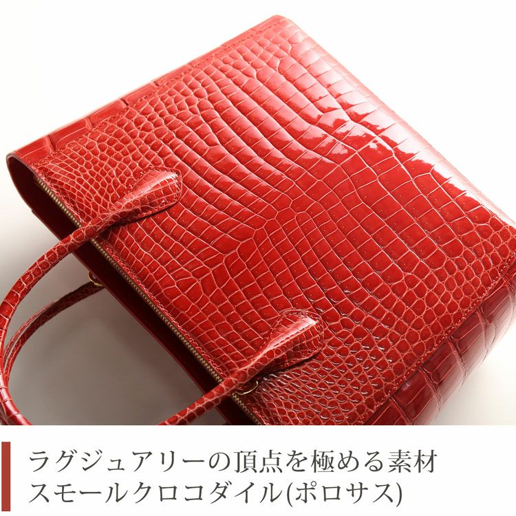 天然皮革 エキゾチックレザー スモールクロコダイル ハンドバッグ ミニ トートバッグ型 レディース 2WAY センター取り シャイニング加工 あおりポケット 付き 保証書付き ブラック レッド 鰐革 本革 プレゼント ギフト ladiesbag