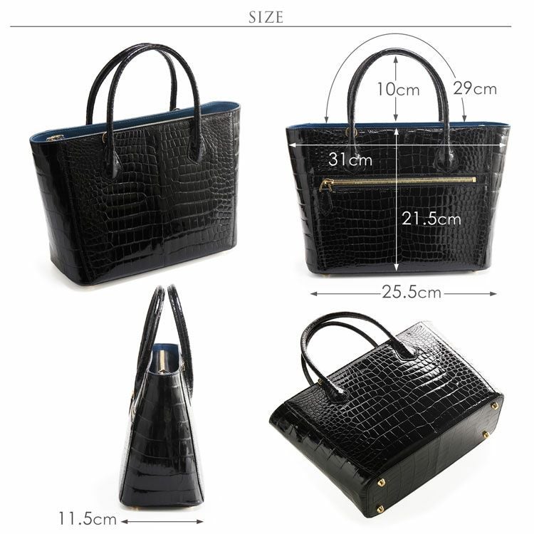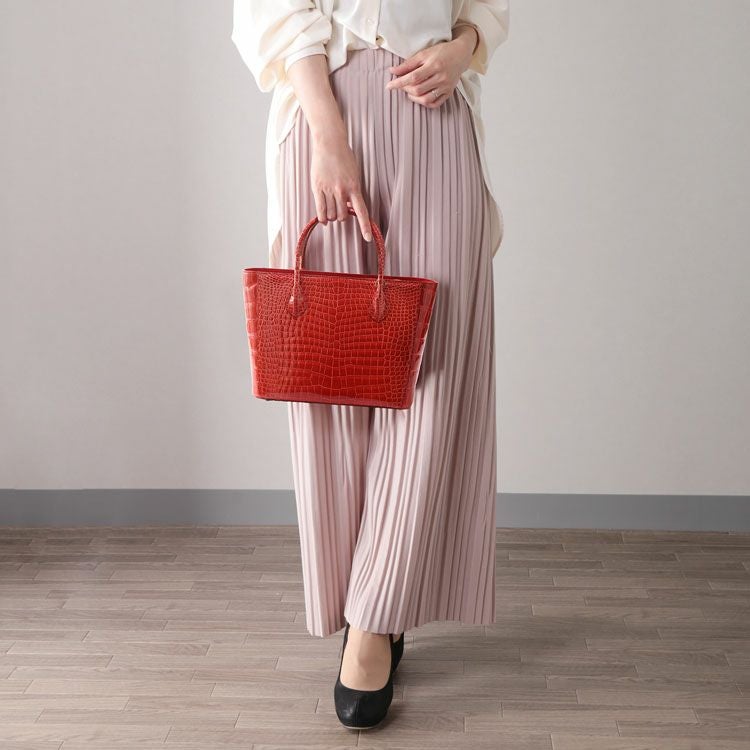 | 商品名:スモールクロコダイル ハンドバッグ トートバッグ型 レディース 2WAY センター取り シャイニング加工 あおりポケット 付き 4FA 保証書付き ブラック レッド プレゼント ギフト |