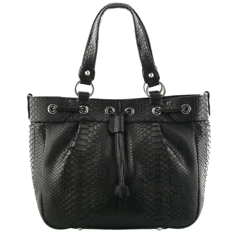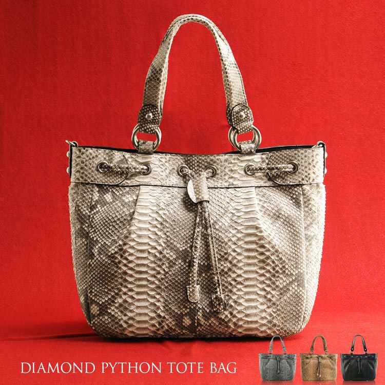 ダイヤモンドパイソンで仕立てた大きなトートバッグ。