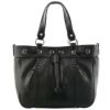 バッグの前面にギャザーを施し、開口部周りの革紐がフェミニンなデザイン。