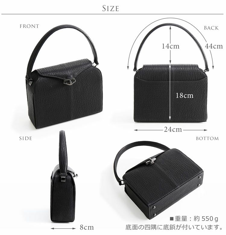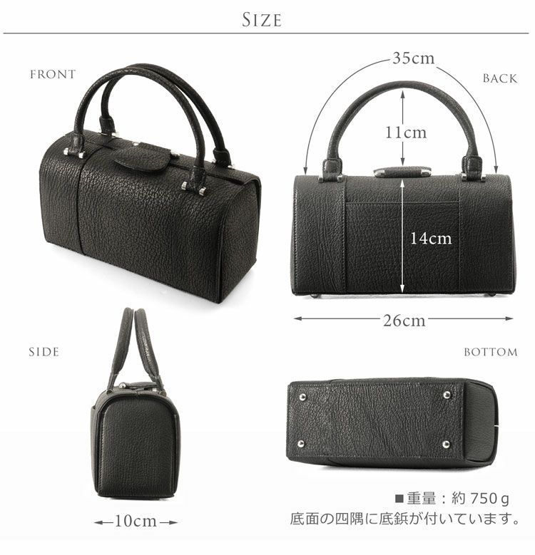 シャーク ブラック フォーマルバッグ レディース 日本製 本革 ボックス型 4FB
