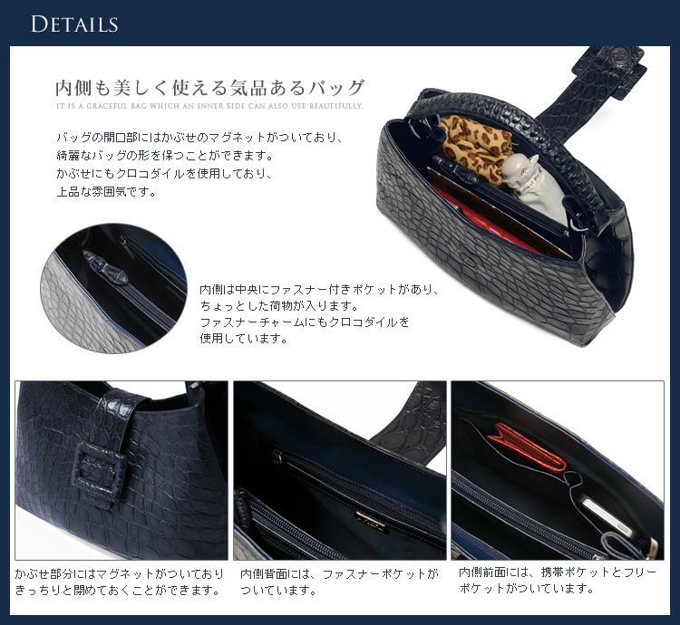 内装:スエード調の生地、牛革(本革)、クロコダイル |