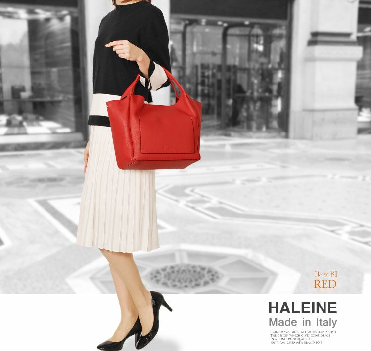 HALEINE イタリア製 牛革トートバッグ ポーチ付 4FB