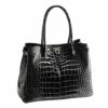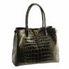 天然皮革 エキゾチックレザー 日本製 クロコダイル ハンドバッグ シャイニング加工 目地染め/レディース クロコダイル女性 本革 JRAマーク付き 黒 肩掛け レディースバッグ 安心 保証書 付き 母 女性ギフト ladiesbag