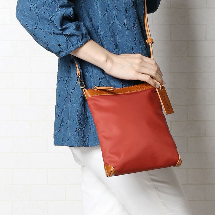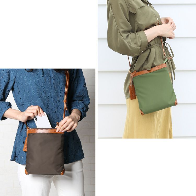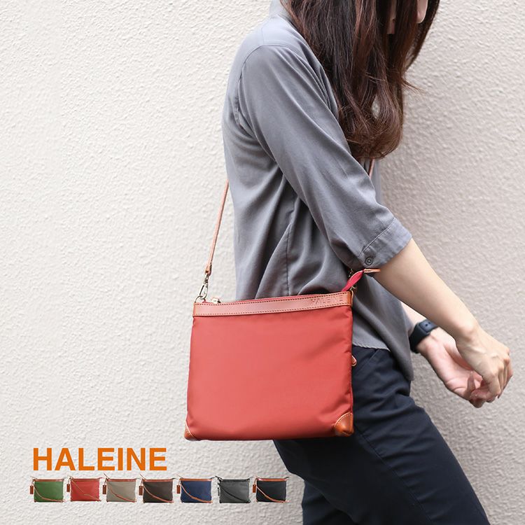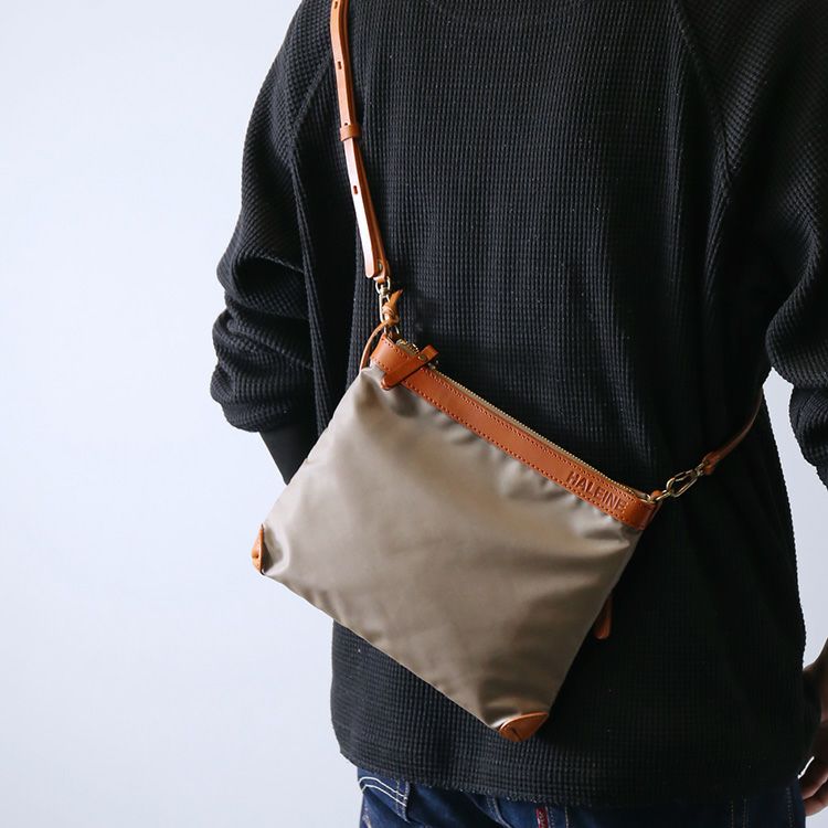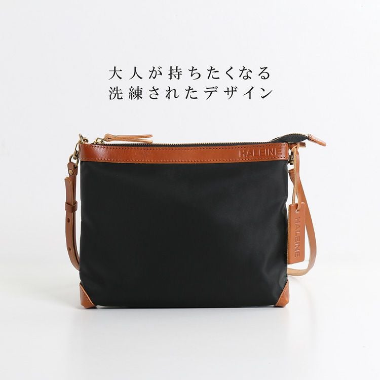 ※名入れご希望の方は必ず名入れをご購入ください HALEINE 日本製 ナイロン ヌメ革 縦型 サコッシュ 4FB 【名入れ 別途購入で可能】