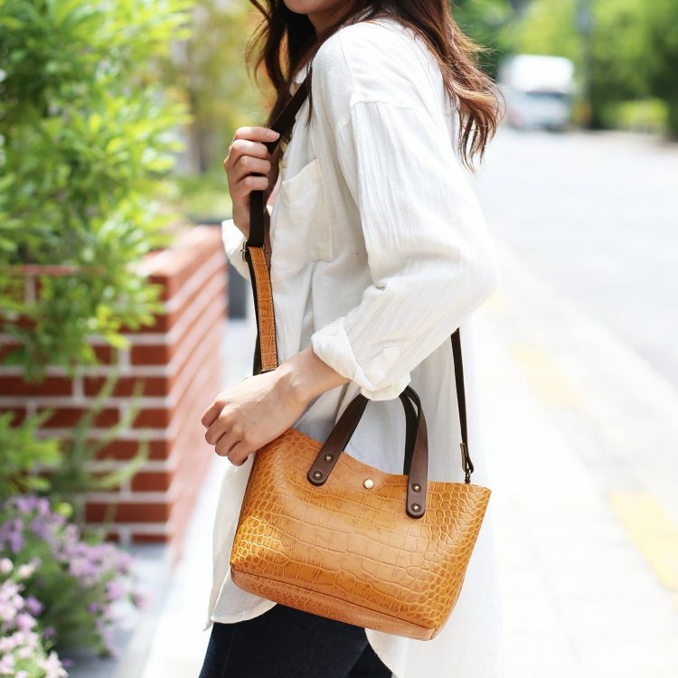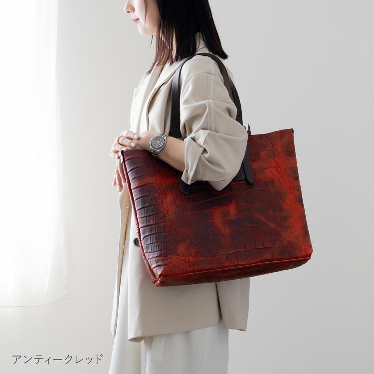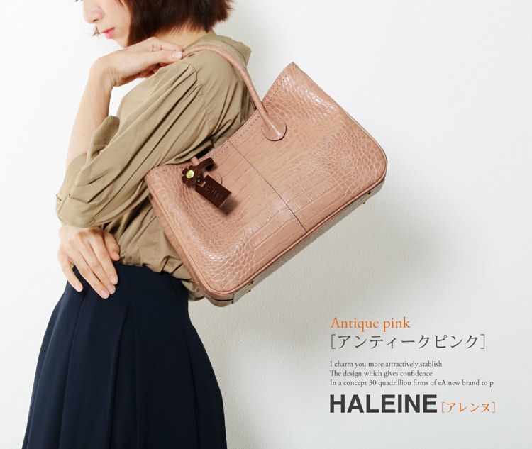 HALEINE 日本製 クロコダイル型押し 牛革 ハンドバッグ 4FB