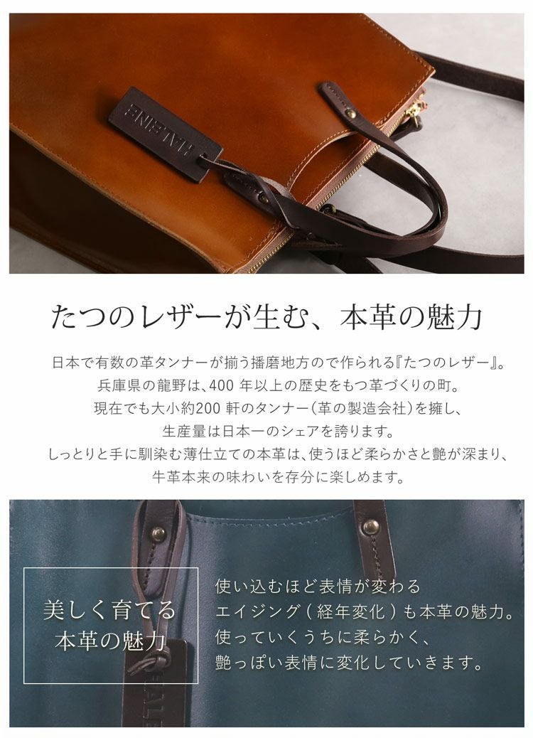 ※名入れご希望の方は必ず名入れをご購入ください 【名入れ 別途購入で可能】HALEINE たつのレザー 切りっぱなし トートバッグ 4FB