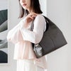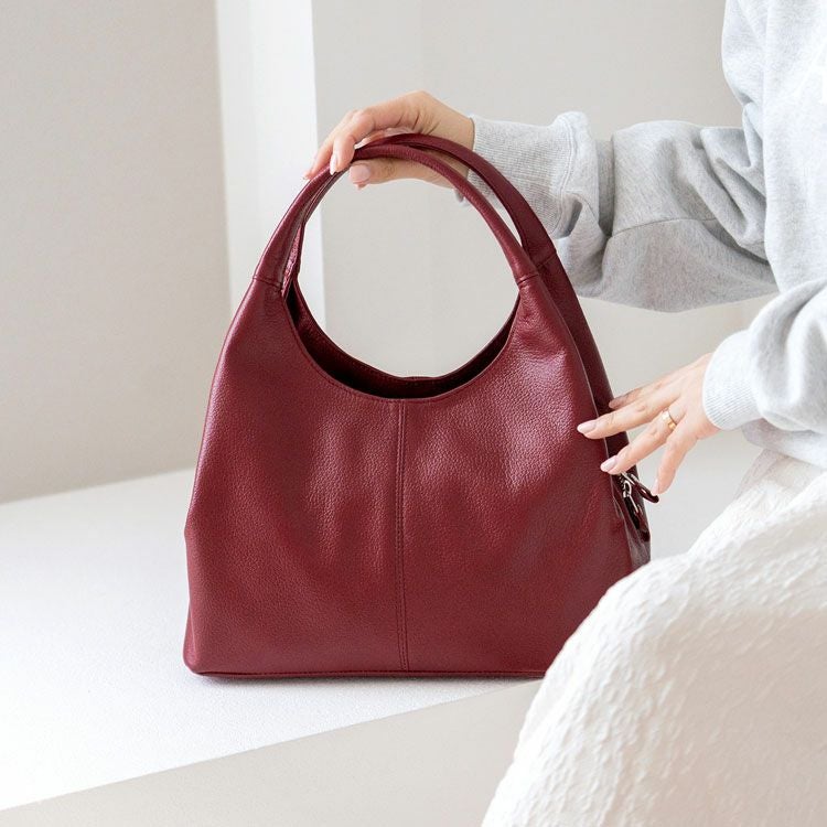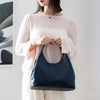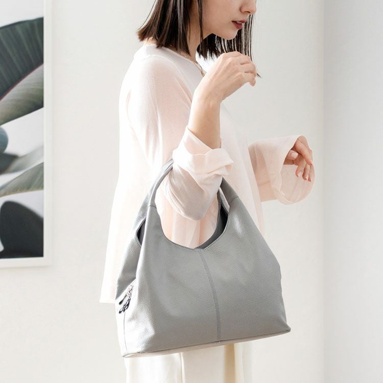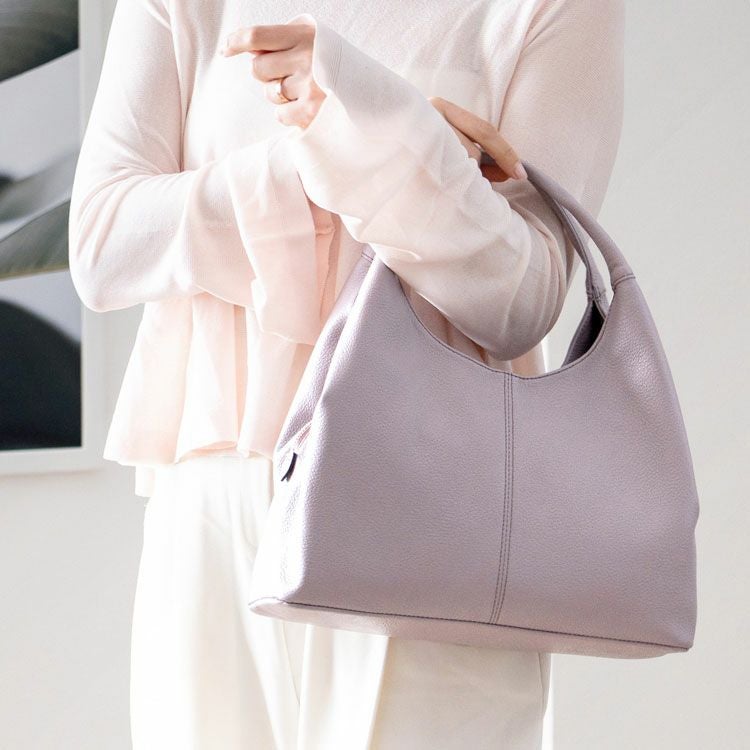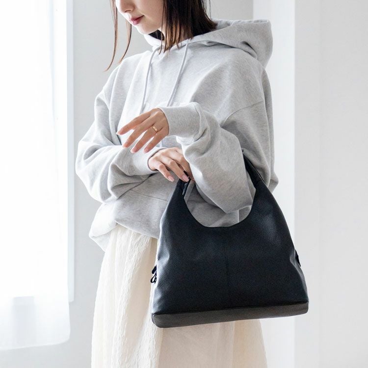 肩掛けをした際に脇にフィットするようハンドルの内側が円になったデザイン。