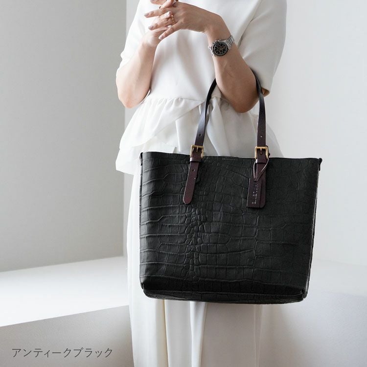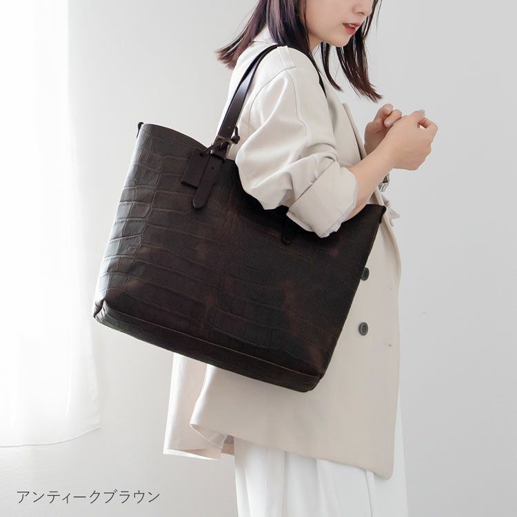 ※キーワード:レディーストートバッグ トート型 本革 レザー 牛革 ヌメ革 クロコ型押し 大きめ 日本製 鞄 プレゼント 名入れ 記念品 ビジネスバッグ 旅行 通勤バッグ