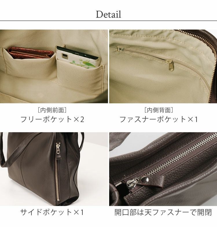 商品名:jamale 牛革 トートバッグ ファスナー付き 日本製 レディース