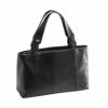 ブラックカラーの本革で仕立てたシンプルなデザインのハンドバッグ。