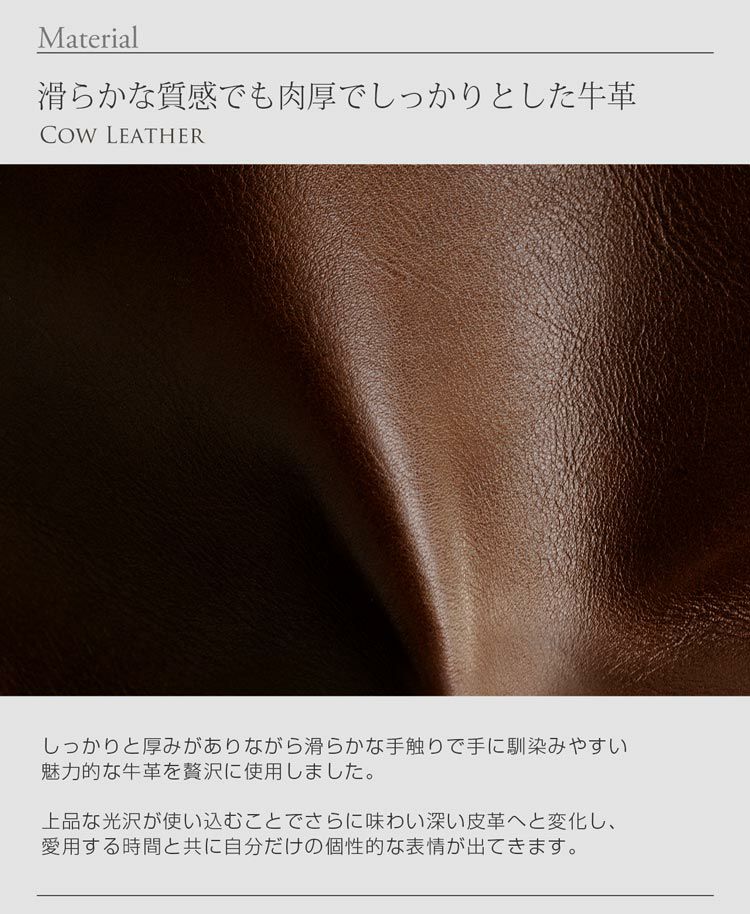 しっかりと厚みがありながら滑らかな手触りで馴染みやすい極上の牛革を贅沢に使用しました。