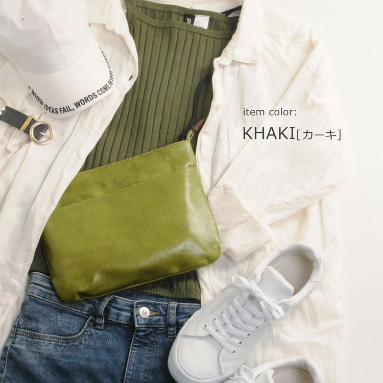 クタッとした柔らかさ、手触り最高です★ 写真では明るめの色味ですが、実物はもっと暗めでした。いっしょに写っているインナーのカーキ色に近いです。 参考までに。他の商品でも色確認してみたところ、アレンヌ・アンティーク加工牛革ショルダーバッグのカーキ色でした。おそらく他のお色もこちらの方が実物に近いのでは?