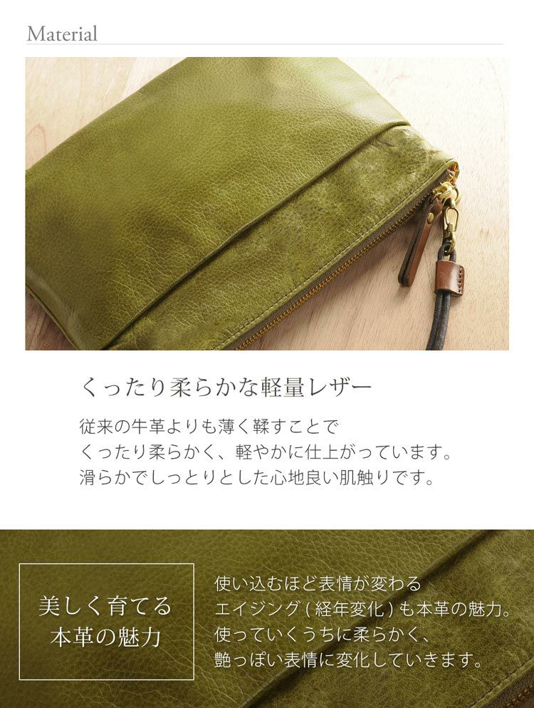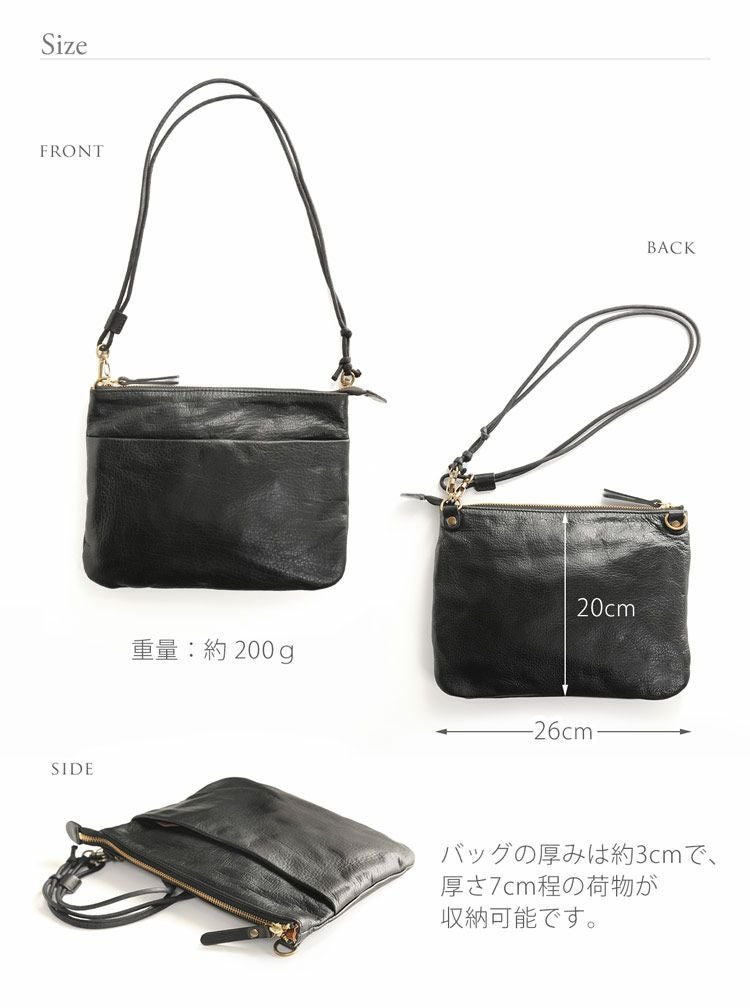 くったりとした柔らかな日本製の牛革で仕立てた小さなショルダーバッグ(サコッシュ)。