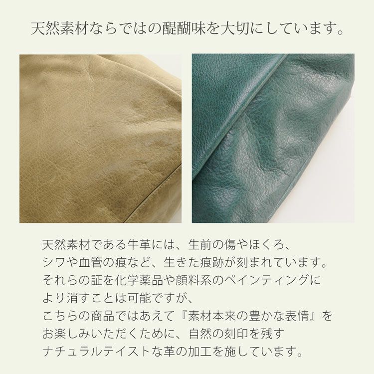 使い込むほどに柔ららかさが増し、艶っぽい表情に変化するエイジング(経年変化)も楽しめる素材です。